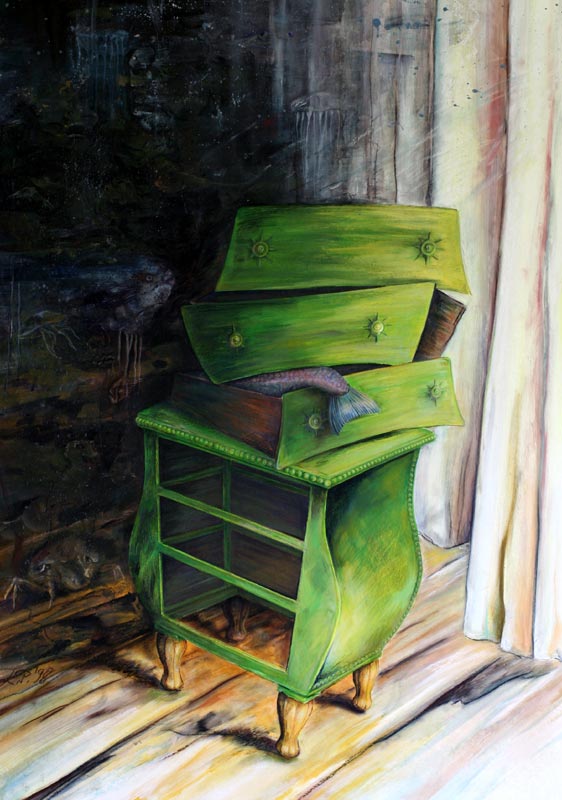 "Fischkommode" - Mischtechnik - 123 x 85 cm