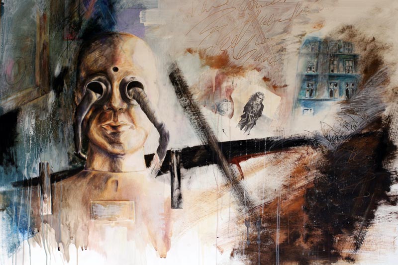 "Ohne Titel ( Kopf mit Schläuchen)" - Mischtechnik - 80 x 120 cm
